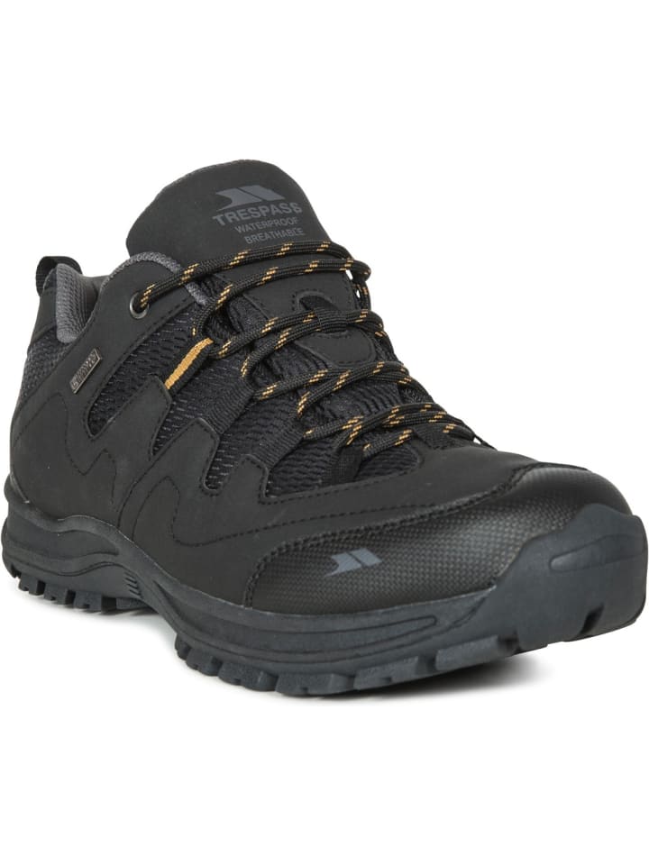 Ботинки Trespass Finley Low Cut для хайкинга — идеальный выбор для тех, кто любит проводить время на свежем воздухе. Мужские низкие походные ботинки черного цвета не только обеспечивают оптимальный комфорт, но и отличаются особой прочностью благодаря прочному материалу. Обувь идеально подходит для походов по неровной местности и обеспечивает надежное сцепление благодаря нескользящей подошве.