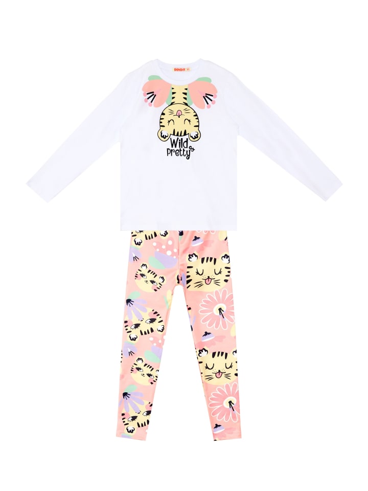 Комплект из двух частей: леггинсы и футболка. Футболка с длинными рукавами из чесаного хлопка. С милым принтом в виде животных. Подходящие леггинсы из узорчатой ткани. Вся продукция Denokids производится с учетом безопасности детей. - Комплект леггинсов \u0026 Футболка
