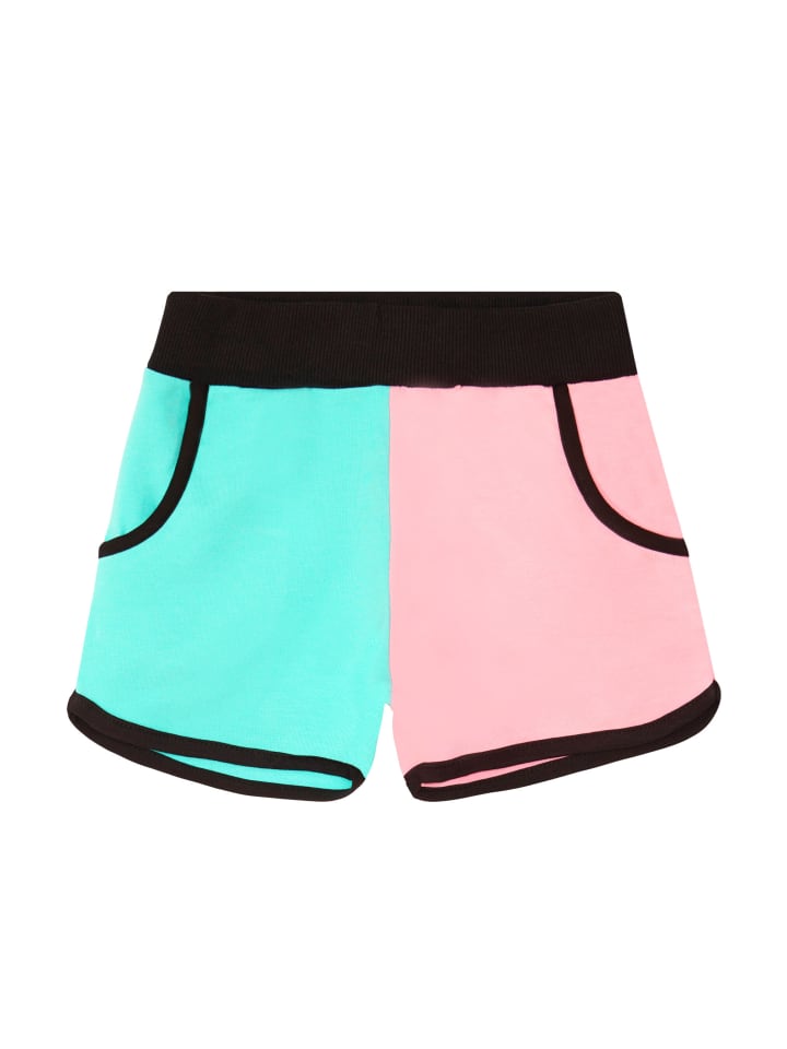 Комплект из 2-х предметов. Укороченная футболка с разноцветными звездами. Шорты с разноцветными штанинами и эластичным поясом. Обычная посадка. Если вы растете, мы рекомендуем брать на размер больше. Вся продукция Denokids производится в соответствии с правилами безопасности детей.