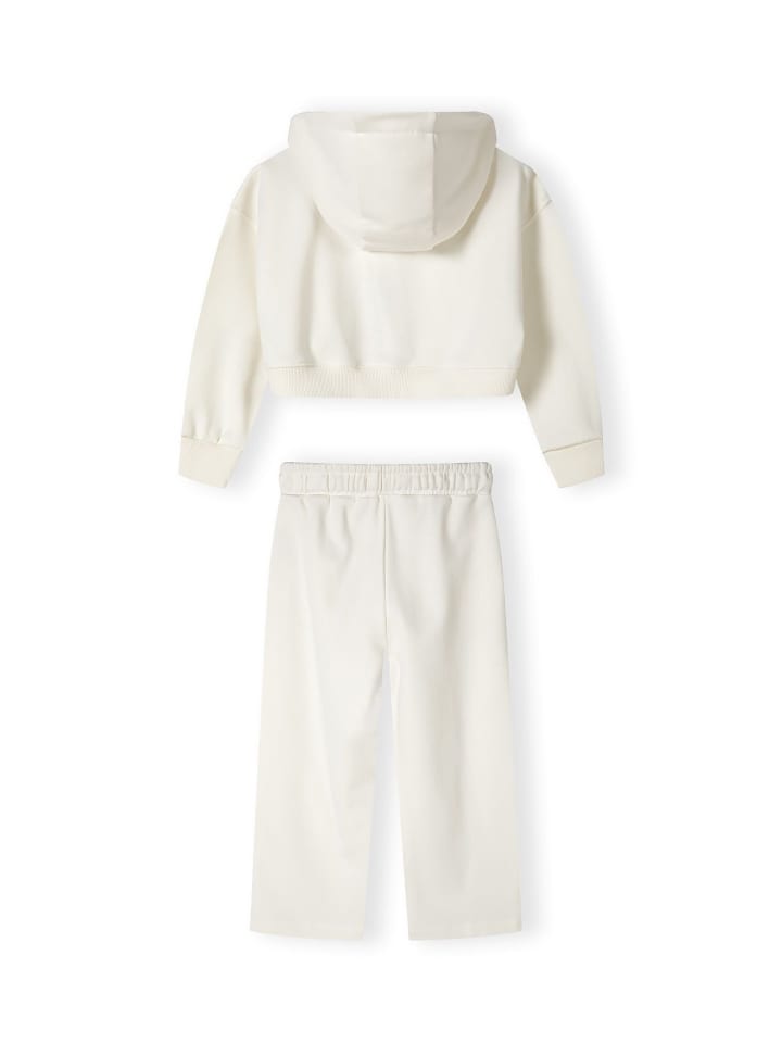 Свитшот и спортивные штаны из трикотажной ткани с добавлением хлопка. Толстовка с капюшоном, модным принтом, удобным карманом-кенгуру, а также ребристыми рукавами и подолом. Спортивные брюки с широкими штанинами, эластичным поясом со шнурком и боковыми карманами. - Толстовка и спортивные штаны из трикотажной ткани с добавлением хлопка.