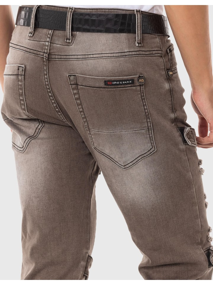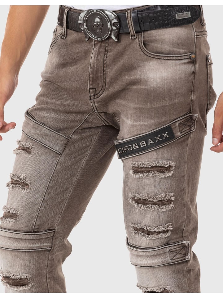 С этими джинсами от Cipo \u0026 Baxx вы гарантированно создадите восхитительный образ. Узоры тон в тон подчеркивают необычный дизайн, а легкая потертость на коленях также привлекает внимание. Брюки облегающего кроя. Он изготовлен из хлопка и эластана, поэтому всегда обеспечивает необходимый уровень комфорта. — Классные мужские джинсы от Cipo Baxx