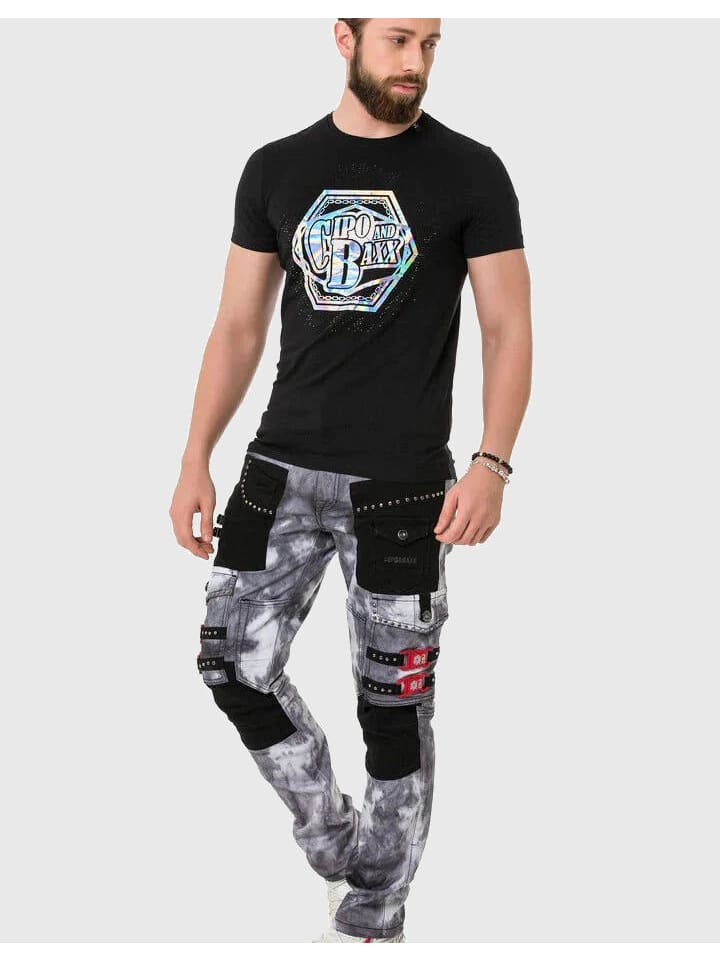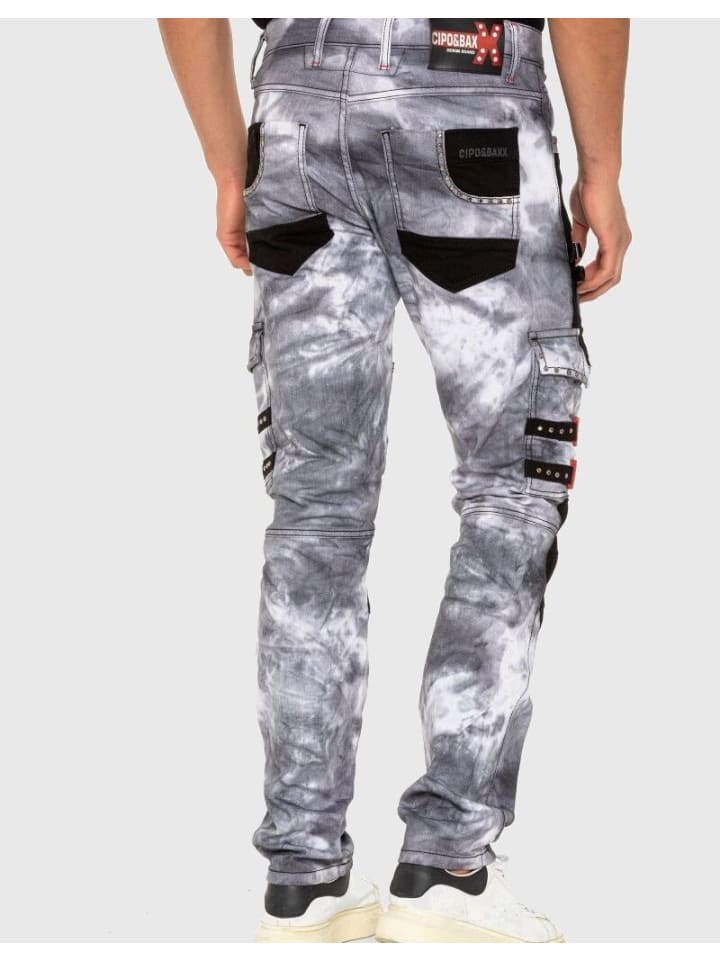 Мужские джинсы «Cipo \u0026 Baxx» — очень стильные джинсы. У нее много отклонений. Джинсы были сшиты с двойным поясом. Кроме того, некоторые части джинсов выполнены из искусственной кожи. Спереди джинсов прикреплены две молнии, что подчеркивает байкерский образ. - Байкерский стиль
