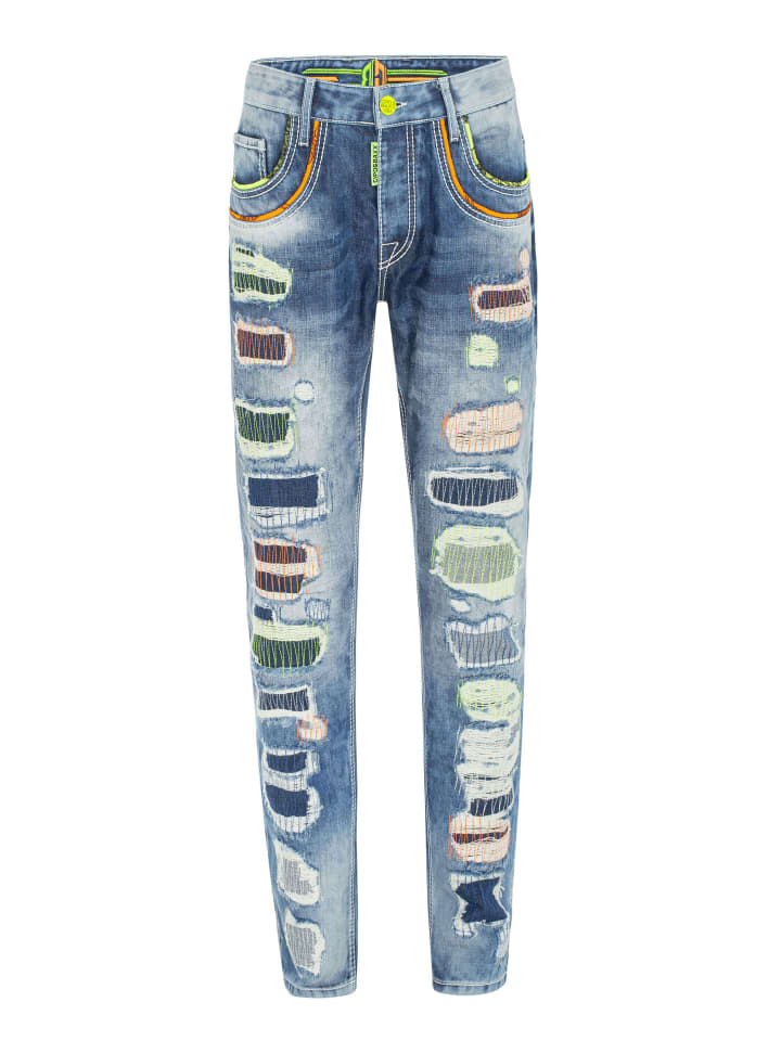 Модные джинсы прямого кроя от бренда Cipo & Baxx для мужчин имеют отличный крой и поэтому прекрасно подходят для любого случая. Джинсы также выглядят впечатляюще, а благодаря красочным рваным деталям они непременно привлекают внимание, независимо от того, с каким образом их сочетать. — Модные мужские джинсы от Cipo Baxx