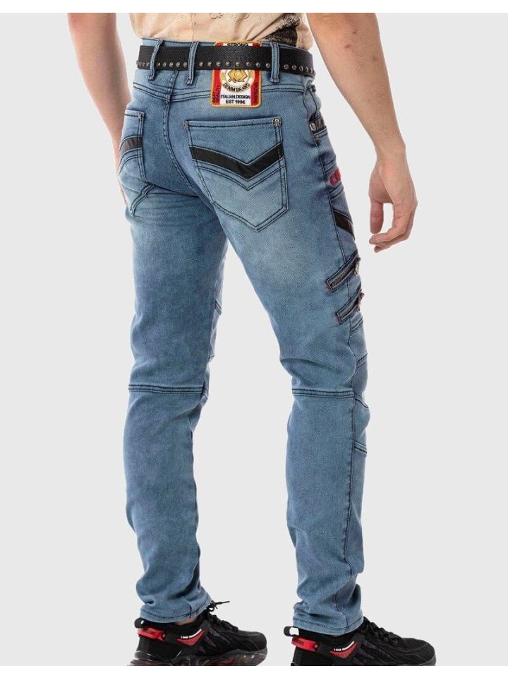 Ультрасовременная, стильная одежда, представляющая собой уникальное сочетание городского уличного стиля и современной моды. Эта модель \"Cipo \u0026 Baxx\" — один из самых привлекательных дизайнов. Красная ткань, использованная в джинсах, делает эту модель особенной и гарантированно привлекает внимание. Имеет 2 боковых кармана в стиле карго и 4 дополнительные молнии спереди. Эти модные джинсы станут идеальным спутником на отдыхе. - Модные джинсы от бренда Cipo &u0026 Baxx для мужчин