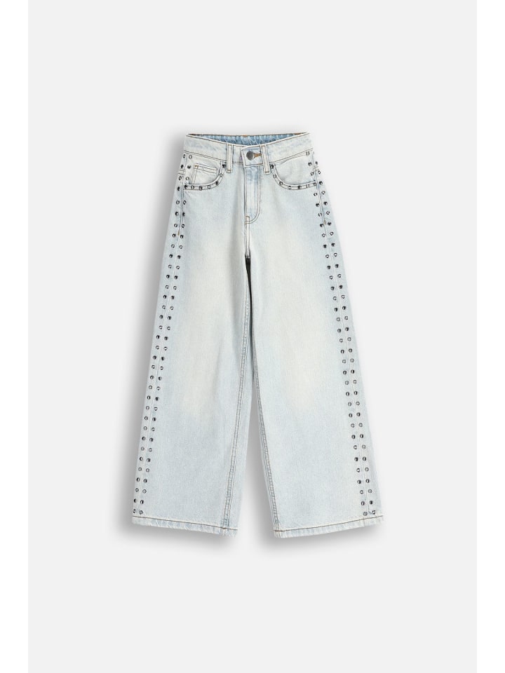 Откройте для себя серые джинсы широкого кроя, которые сочетают в себе современный стиль и комфорт. Эти джинсы, изготовленные из высококачественного хлопка, обеспечат комфорт в течение всего дня. Уникальные украшения из кристаллов на штанинах придают им особый характер, который обязательно привлечет внимание.
