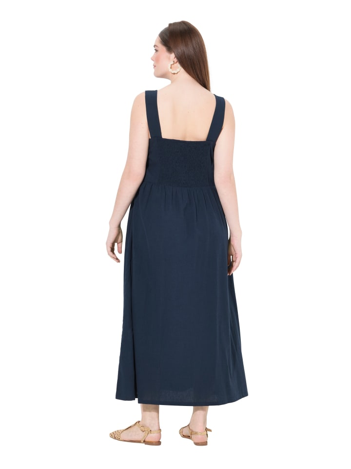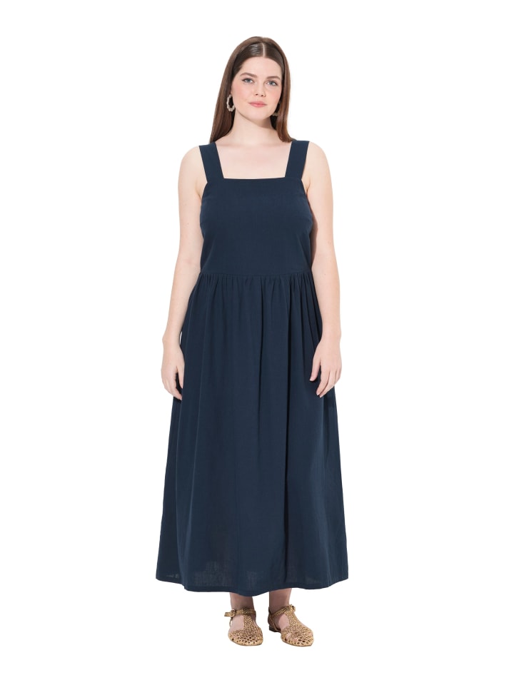 Платье макси из органического хлопка и льна. Длинное платье А-силуэта, без рукавов, с удобными широкими регулируемыми бретелями. Облегающий топ — эластичная сборка на спине, расклешенный подол, карманы в боковых швах. Органический; сертифицирован ECOCERT Greenlife Лицензия №. 152026.
