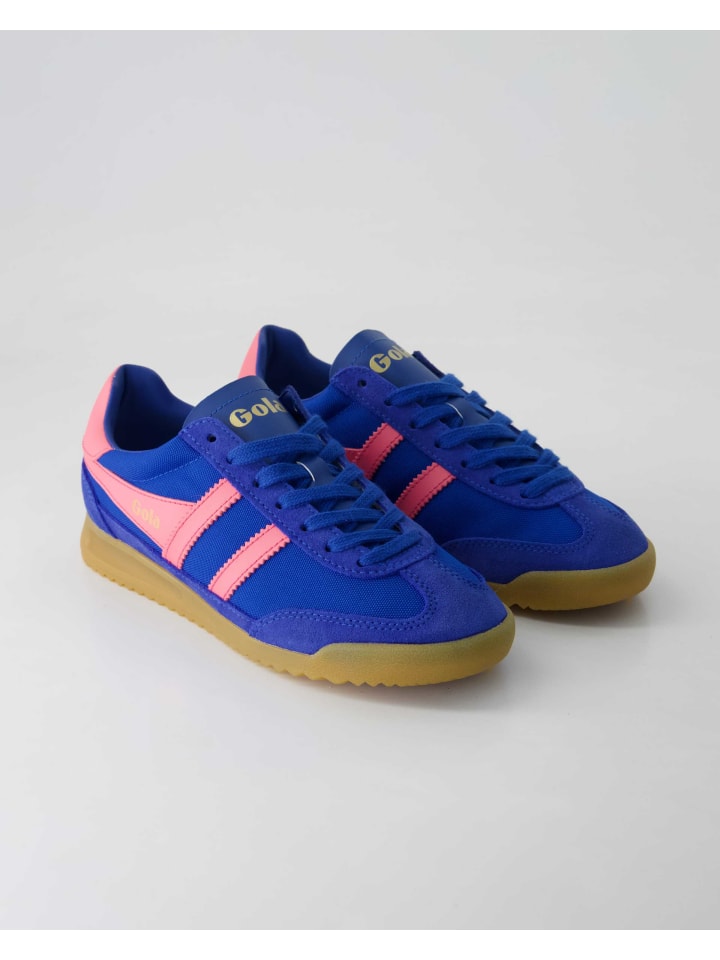 Женские кроссовки Gola Clb623 синего цвета сочетают замшу и текстиль, создавая стильный ретро-дизайн. Контрастные розовые полосы создают спортивный образ, а прочная резиновая подошва обеспечивает высокий комфорт и уверенность. Идеально подходит для повседневной носки, отдыха или уличного стиля — эти кроссовки добавят цвета и динамизма любому гардеробу. Закажите сейчас и ощутите модный спортивный стиль!