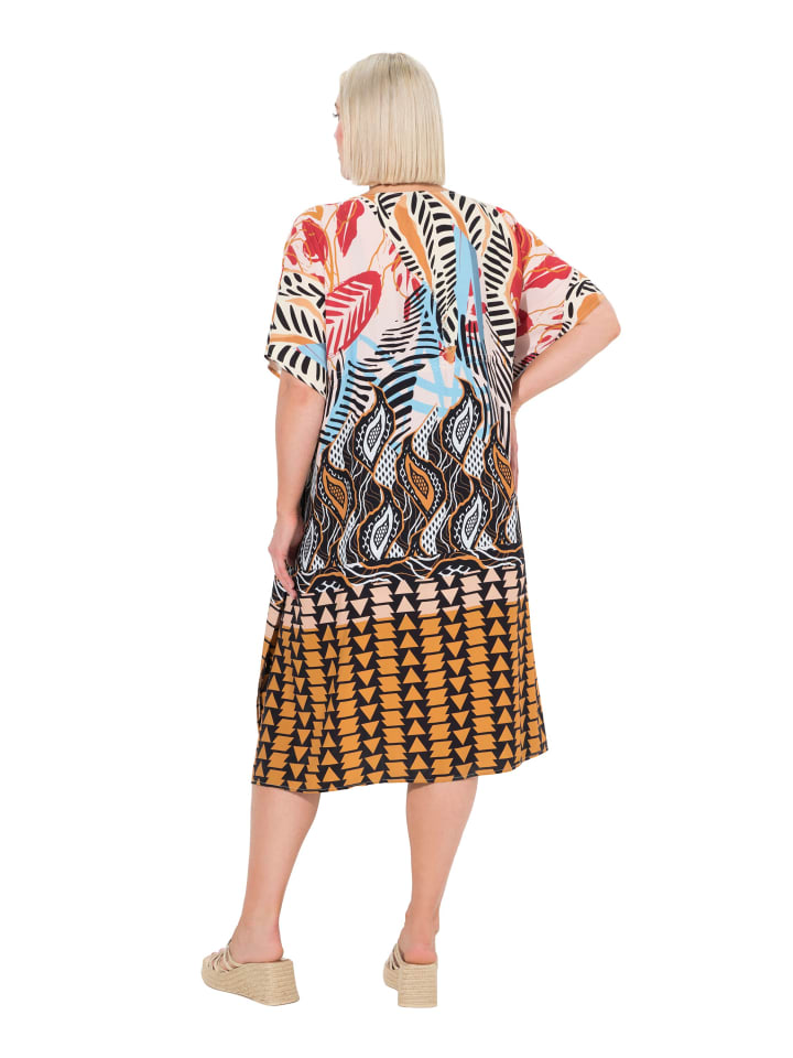 Широкий кафтан с принтом в стиле сафари. Завязка на талии, длинные разрезы по бокам.