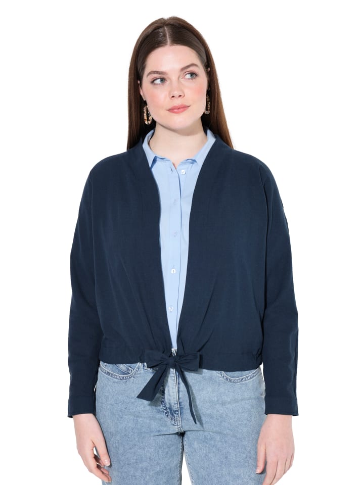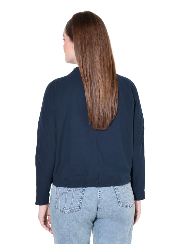 Куртка-болеро из органического хлопка и льна. Короткая куртка с воротником-стойкой и пришитыми длинными рукавами «летучая мышь». Подол с длинной завязкой - всегда желаемый силуэт с бантом или декоративным узлом! Органический; сертифицирован ECOCERT Greenlife Лицензия №. 152026.
