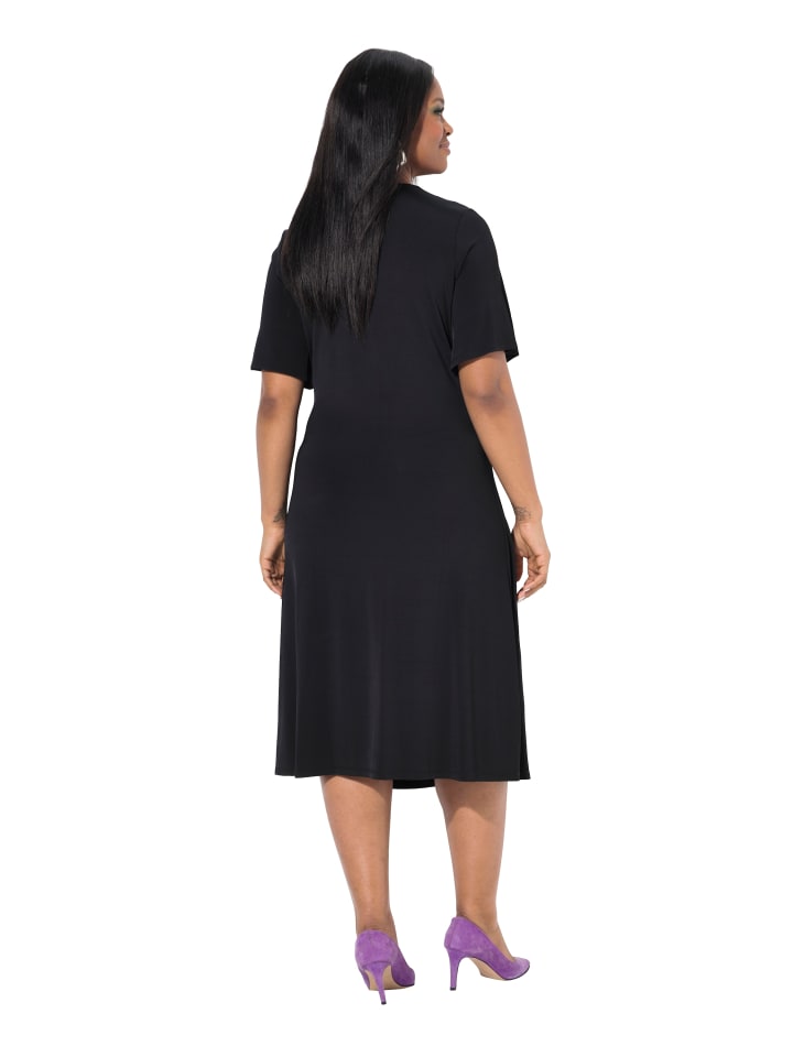 Облегающее платье классического кроя из тонкого обтягивающего трикотажа. Изюминка: женственная драпировка на талии. V-образный вырез, рукава-крылышки.