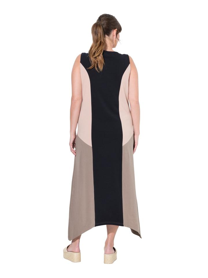 Платье из органического хлопкового джерси с цветными блоками и отделкой по низу платком. Платье А-силуэта без рукавов с вырезом-лодочкой. Органический; сертифицирован ECOCERT Greenlife Лицензия №. 152026.