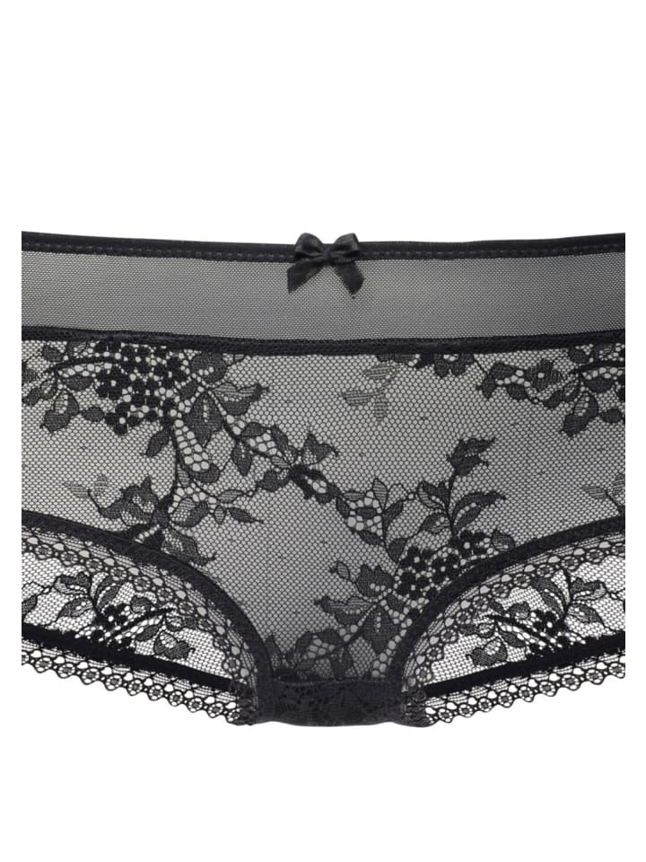 Женственные трусики с изящным декоративным бантом по центру спереди. Изготовлено из тонкого прозрачного жаккардового кружева. С интегрированной хлопковой ластовицей. Доступен соответствующий бюстгальтер из той же серии. Создано с любовью и страстью в Гамбурге. Изготовлено из 88% полиамида, 12% эластана.