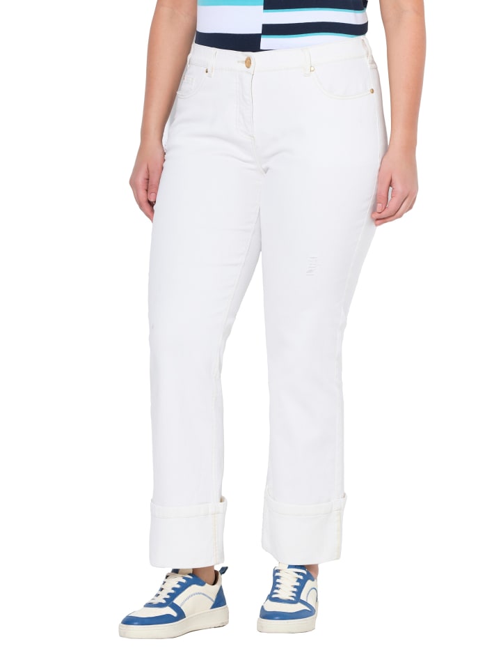 Джинсы Мэри, широкие и прямые, с пятью карманами, с отворотом. Удобный пояс со шлевками, пуговицей и молнией.