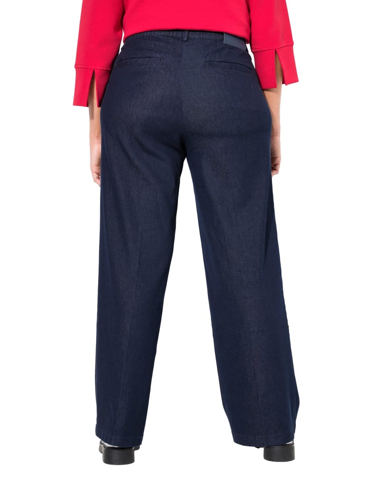 Джинсы Mary, широкие, прямого кроя, из мягкого денима со стрелками. Элегантные джинсы с четырьмя карманами, эластичным поясом, шлевками для ремня, пуговицей и молнией.