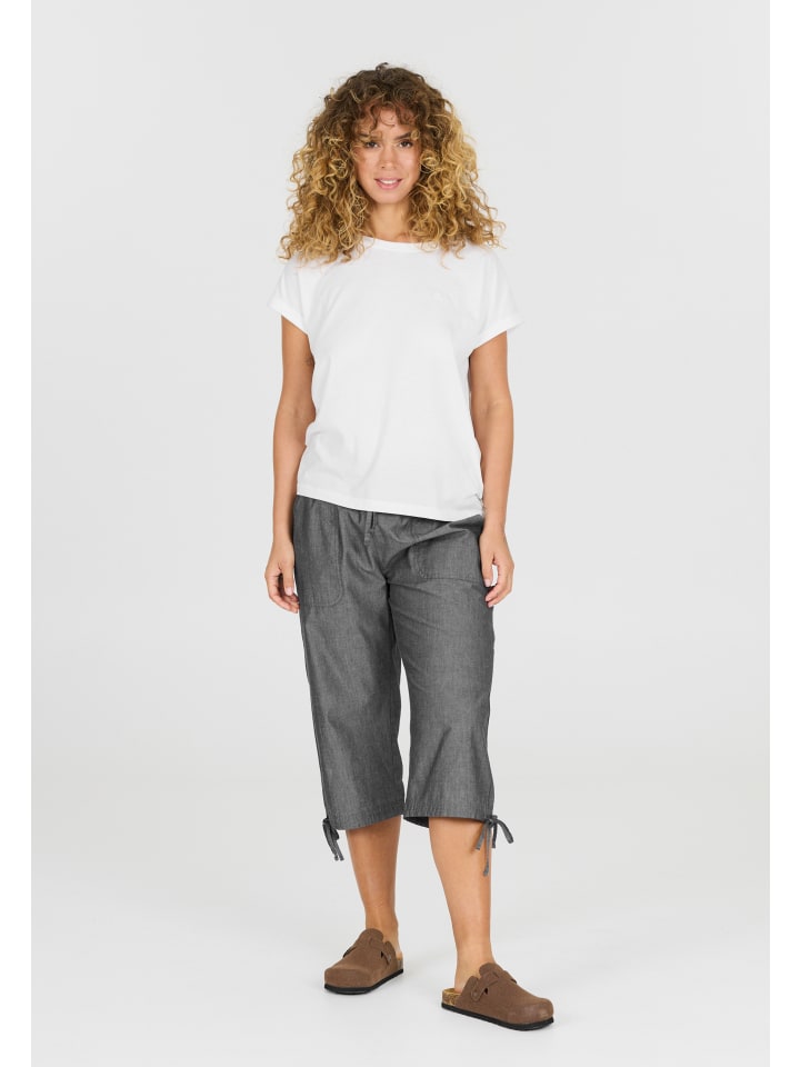 Капри «Эмми» от Cruz станут идеальным компаньоном для расслабленных дней. Изготовленный из хлопка, он легкий, дышащий и очень удобный — он идеально адаптируется к вашему стилю. Эластичный пояс со шнурком обеспечивает свободную посадку, а манжеты на концах штанин создают стильный образ. Благодаря практичным боковым карманам у вас всегда будет достаточно места для мелких предметов. Брюки легко гладятся и идеально подходят для создания повседневного спортивного образа — настоящая необходимость в повседневной жизни! - Летние капри для женщин от Cruz