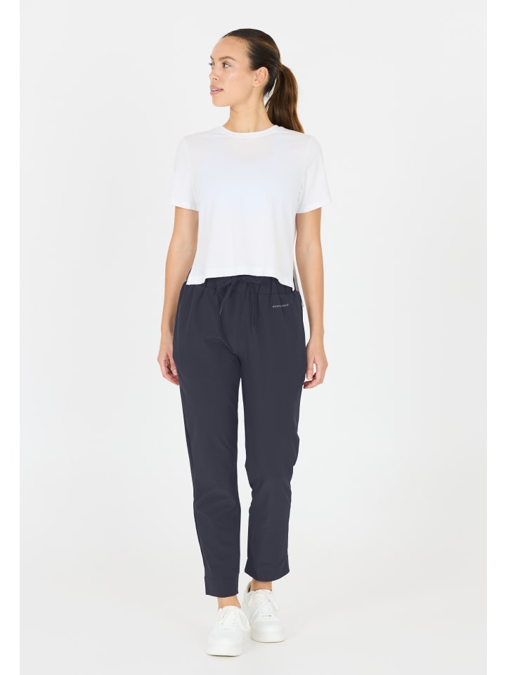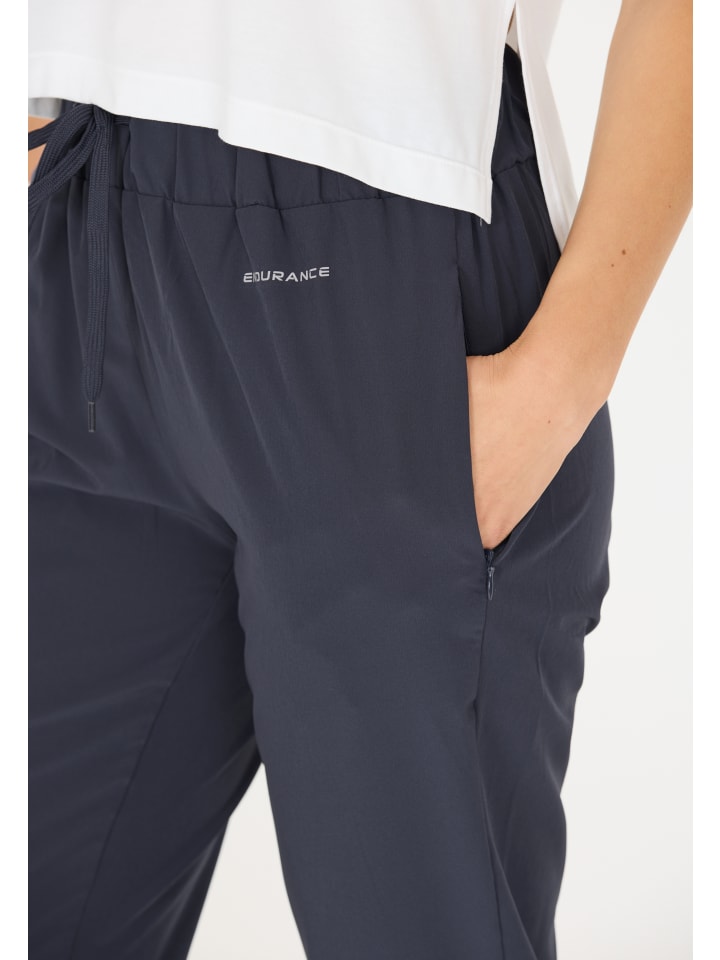 Универсальные тренировочные брюки PHILE STRETCH от ENDURANCE для женщин отличаются стильным дизайном в сочетании со спортивной функциональностью. Тренировочные брюки изготовлены из легкой, эластичной смеси полиэстера и эластана и обеспечивают оптимальную свободу движений во время занятий спортом. Брюки особенно быстросохнущие и дышащие. Свободный прямой крой и широкий пояс с завязкой обеспечивают удобную посадку. Светоотражающий логотип обеспечивает дополнительную безопасность на дороге. Брюки также имеют карман на молнии. Хотите ли вы создать себе образ для бега, фитнеса или пешего туризма — тренировочные брюки PHILE STRETCH от ENDURANCE всегда обеспечат спортивный вид! Кстати: функциональные брюки можно просто постирать в стиральной машине при температуре 40 градусов. - Спортивные брюки от ENDURANCE для женщин