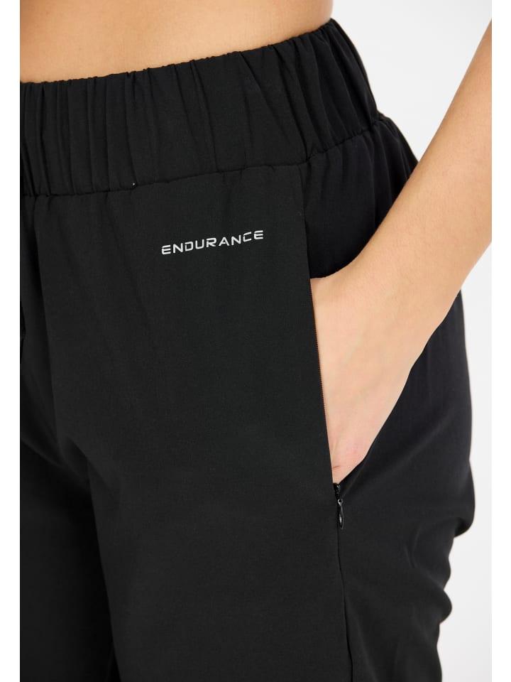 «Phile» от Endurance — идеальные тренировочные брюки для женщин, которые в равной степени ценят комфорт и функциональность. Благодаря материалу, растягивающемуся в 4 направлениях, и дышащей, быстросохнущей отделке брюки обеспечивают оптимальную свободу движений и ощущение комфорта. Укороченная длина штанин создает современный образ, а регулируемый пояс и практичные карманы на молнии обеспечивают дополнительный комфорт. Светоотражающие детали улучшают видимость в условиях низкой освещенности — идеально подходят для занятий спортом, а также для повседневного использования. - Высококачественные женские спортивные брюки от Endurance