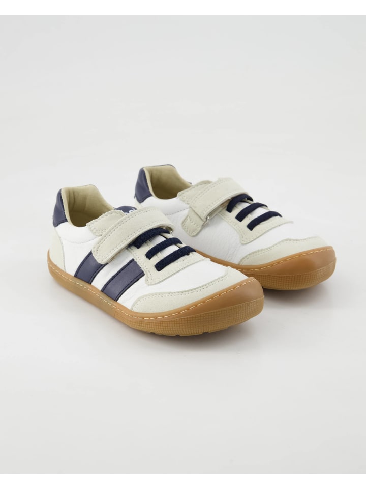 Кроссовки для мальчиков от Koel белого цвета с функцией босиком для здорового комфорта при ходьбе. Верх из кожи и синтетики долговечен, а дышащая кожаная подкладка обеспечивает удобную посадку. Нескользящая резиновая подошва обеспечивает сцепление на любых поверхностях. Идеально подходит для активных детей в повседневной жизни, в детском саду или на детской площадке. Легко надевать благодаря застежке-липучке. Закажите сейчас и откройте для себя идеальную повседневную обувь!