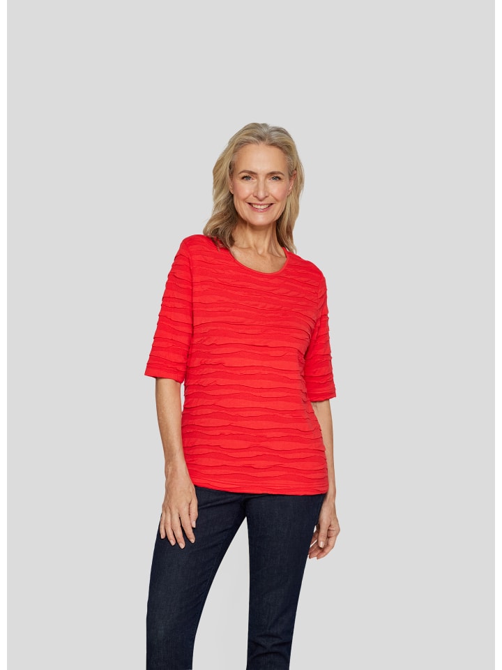 Эффектная сборка ткани создает живой образ и выгодно подчеркивает фигуру. Яркий цвет привлекает всеобщее внимание и придает вашему образу ауру уверенности. Благодаря приятному материалу вы также насладитесь максимальным комфортом. Структурированная ткань с модным эффектом жатости. Рукава 3/4 — идеальный вариант для переходного сезона. Круглый вырез для классического образа. Мягкий, эластичный и простой в уходе — идеально подходит на каждый день. - Рубашка с рукавами 3/4 и присборенным эффектом