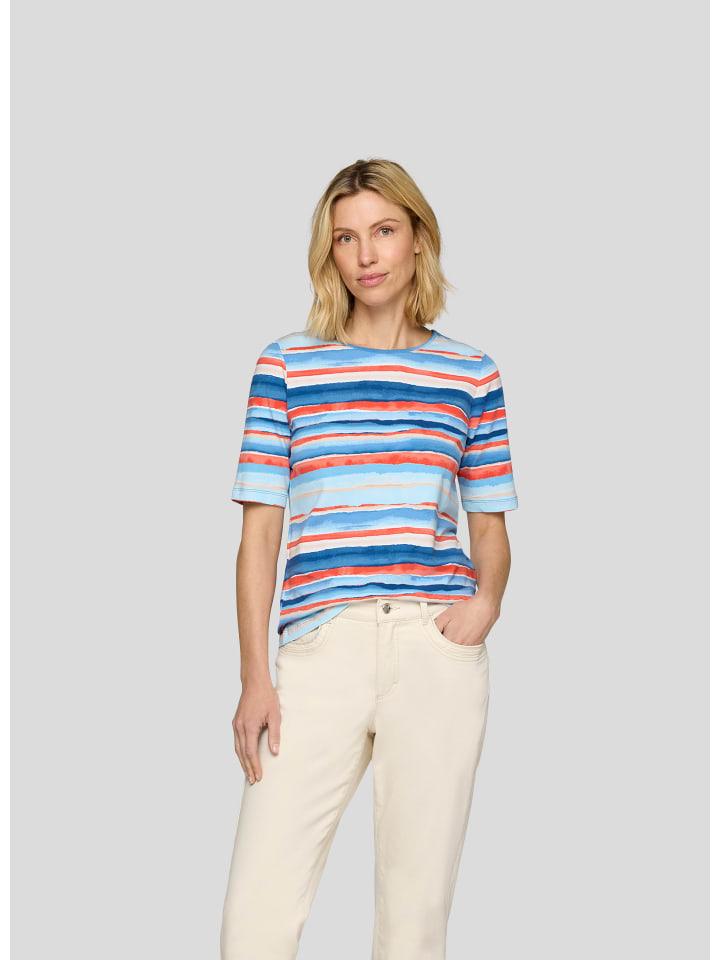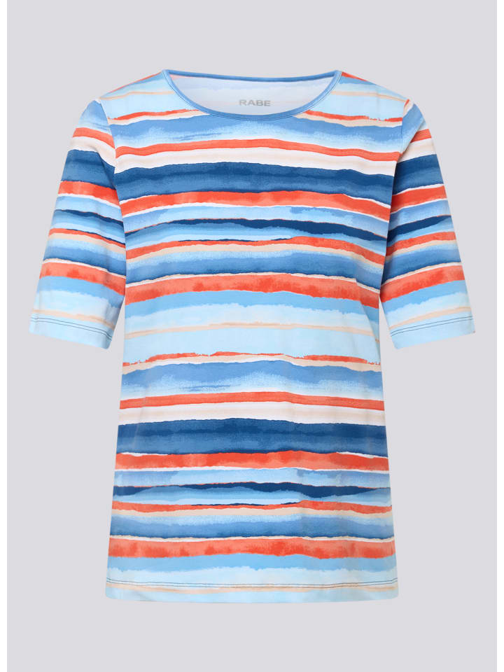 Эта стильная женская рубашка от RABE впечатляет своим современным видом и комфортом. Выразительный рисунок в акварельную полоску добавит изюминку любому наряду — идеально подойдет для повседневного ношения, отдыха или прогулок по городу. Эксклюзивный акварельный полосатый рисунок в креативном дизайне. Короткие рукава для оптимального комфорта в переходные сезоны. Высокое качество изготовления для долговечного качества. Удобный круглый вырез для женственной посадки. Универсальные сочетания — идеально подходят к джинсам, брюкам или юбке. - Рубашка с акварельными полосками