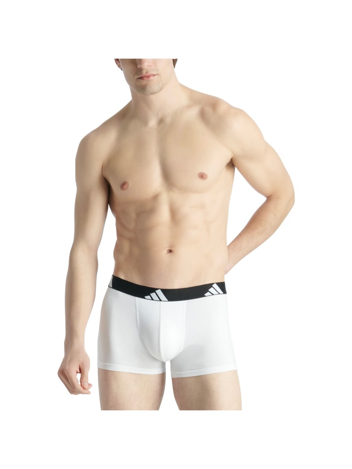 Спортивные плавки для мужчин в упаковке по 3 шт. от бренда adidas. Изготовлено из мягкого эластичного хлопка с удобным поясом с логотипом. Прочный, хорошо отводит влагу.