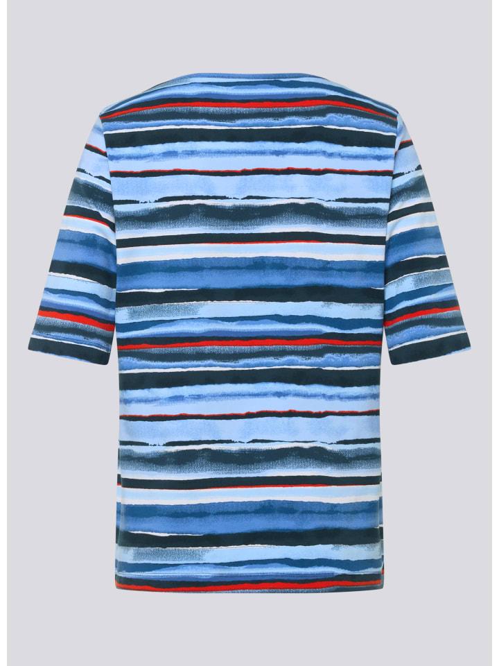 Эта рубашка с круглым вырезом впечатляет художественным полосатым принтом, который привносит в образ свежесть и динамичность. Гармоничные линии разной ширины придают дизайну современный вид. Благодаря высококачественному материалу рубашка особенно удобна в носке и идеально подходит для повседневной носки, отдыха и отпуска. Полосатый принт с современным, нерегулярным рисунком.