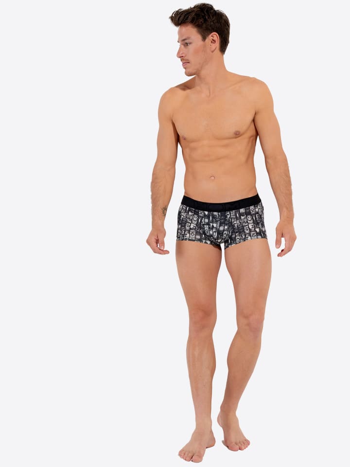 ROCKCITY Trunk — это короткие брюки из микрофибры для мужчин. Он обеспечивает комфорт и поддержку, а материал обладает дышащими свойствами, что делает его комфортным для ношения в течение всего дня. Это мужское нижнее белье с темно-серым принтом изготовлено из полиамида и эластана, т.е. микрофибры. Благодаря свежему, мягкому и шелковистому материалу он адаптируется к любому мужскому силуэту. Это нижнее белье адаптируется к любой мужской фигуре и подчеркивает достоинства любого типа фигуры. Брюки ROCKCITY украшены стильным принтом билета на фестиваль на черном фоне, что придает им уникальный стиль и делает их отличной парой мужских брюк для любого случая. Низкий вырез стильно завершает образ. - Воздухопроницаемый