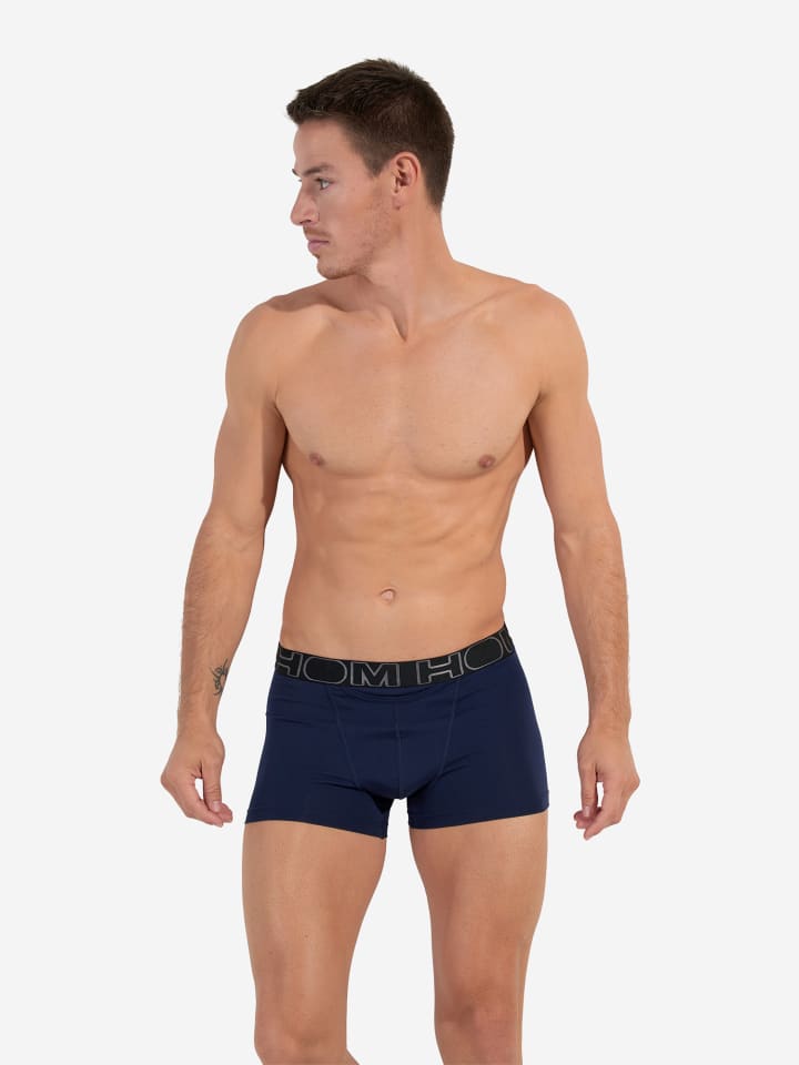 Комплект из 4 предметов «Boxerlines HO1» от HOM включает в себя двое однотонных базовых трусов-боксеров из расчесываемого эластичного хлопка. Пояс из микрофибры этой повседневной классической модели невероятно мягкий, не сдавливает тело и ощущается как вторая кожа. Кроме того, эти боксеры имеют специально разработанную технологию «горизонтального открытия», отсюда и название линейки: HO1. Логотип HOM аккуратно выделен и придает шортам элегантный вид. В подол штанины вшита усиливающая вставка, которая предотвращает скольжение шорт вперед и назад по бедру и обеспечивает идеальную фиксацию. - Горизонтальное вмешательство HO1