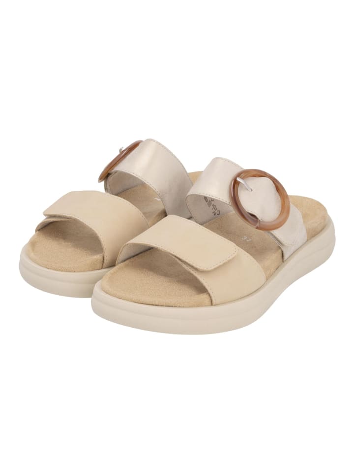 С платьем, шортами или юбкой — эти мюли от Remonte с каблуком-платформой и высококачественной искусственной кожей станут идеальной обувью для теплых летних дней. Простая конструкция, но благодаря эффектной декоративной пряжке модель выглядит довольно непринужденно. Определенно стоит упомянуть мягкую текстильную стельку, которая обеспечивает приятную мягкую амортизацию стопы при каждом шаге. - Застежка: липучка