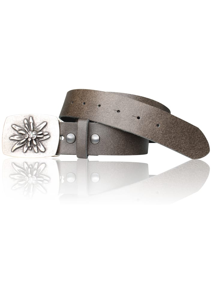 Эдельвейс — самый популярный традиционный мотив, эффектно изображенный на простой, современной пряжке ремня.