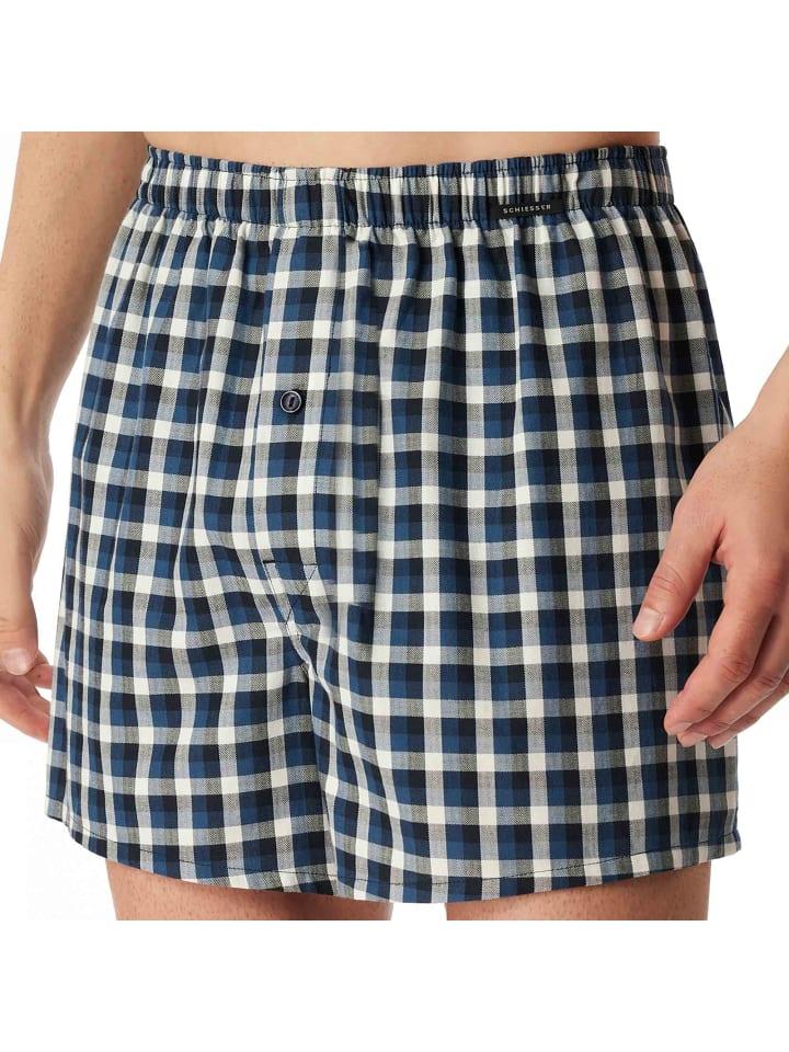 Мужские тканые трусы-боксеры от бренда SCHIESSER в практичной упаковке по 2 шт. Высококачественный тканый материал с эластичным поясом. Лучшее качество SCHIESSER.