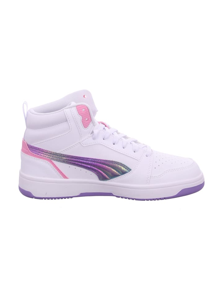 Высокие кроссовки для девушек в стиле скейтерской ходьбы от Puma, модель «Rebound V6», сочетают в себе игривую элегантность и модный стиль. Благодаря шнуровке спереди эти кроссовки обеспечивают идеальную посадку и надежную фиксацию, а переливающиеся аппликации и красивая цветовая гамма создают игривый и модный образ. Высококачественные материалы и продуманная конструкция гарантируют высокий комфорт и делают «Rebound V6» идеальным спутником для повседневной носки и особых случаев. Эти кроссовки не только функциональны, но и добавят модных акцентов, которые дополнят любой наряд.