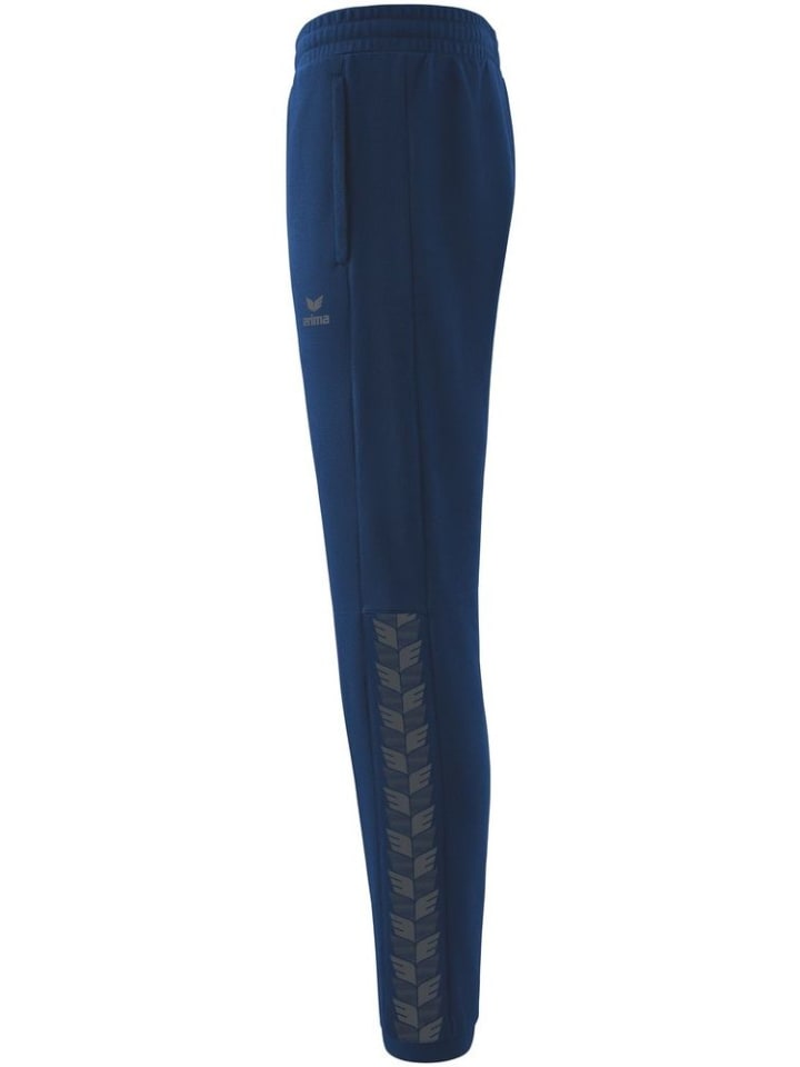 Мягкая хлопковая смесь; Легкая растяжимость для естественной свободы движений; Эластичный пояс с завязкой; Боковые карманы на молнии; Узкие эластичные манжеты на концах штанин; Конический крой; Принт в виде крыльев ERIMA сбоку на голени
