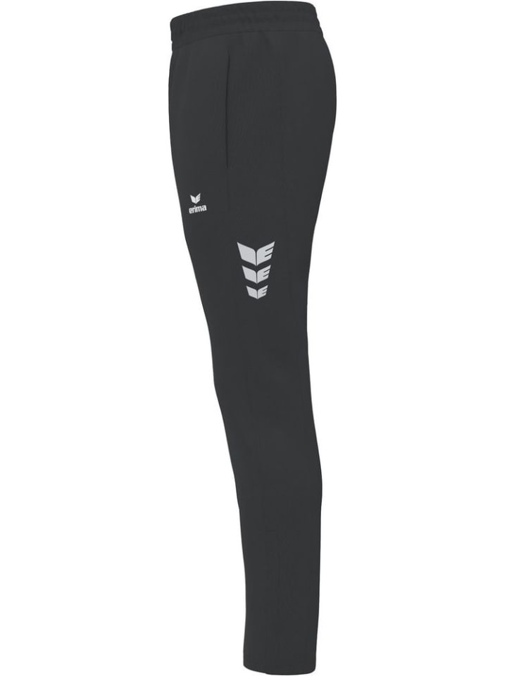 Трикотажный функциональный материал; Зауженные штанины с застежкой-молнией; Эластичный пояс с внутренним шнурком; Потайные карманы на молнии по бокам; Боковые вставки с принтом ERIMA Wings