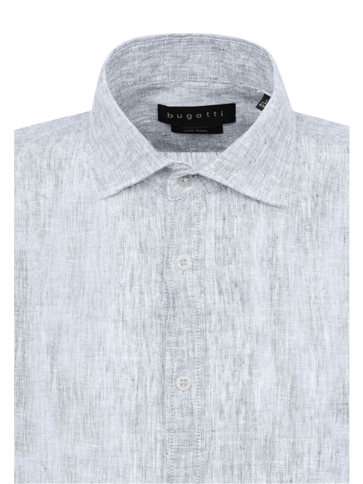 Рубашка Bugatti из 100-процентного льна обеспечивает оптимальный комфорт в теплые дни. Классический воротник «Кент» и квадратные манжеты с двумя пуговицами сочетают в себе элегантность и функциональность. «Современный крой» и сдержанный флажок на боковом шве подчеркивают изысканный стиль этой повседневной рубашки. - Изготовлено из чистого льна