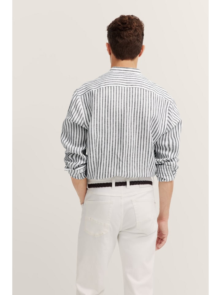 Льняная рубашка от Bugatti сочетает в себе стильную легкость и современный дизайн. Изготовленный из 100-процентного высококачественного льна, он обеспечивает вам максимальный комфорт в теплые дни благодаря воротнику-стойке и охлаждающему материалу. Накладной нагрудный карман и изящный флаг Bugatti в боковом шве завершают элегантный образ. - Изготовлено из чистого льна