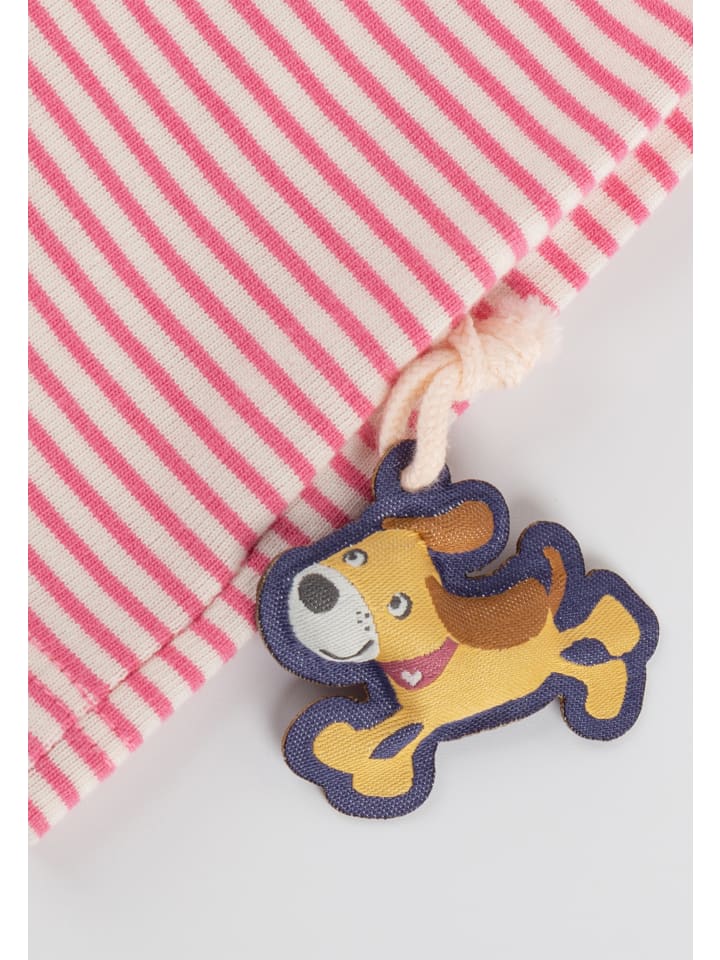 - Верх выполнен из полосатого трикотажа розового и белого цвета. - В соответствии с девизом коллекции, в коллекцию входит коллекционная печатка, которую можно держать в руках, играть и коллекционировать. На этой любимой картине изображена собака. Материал: 100% хлопок.