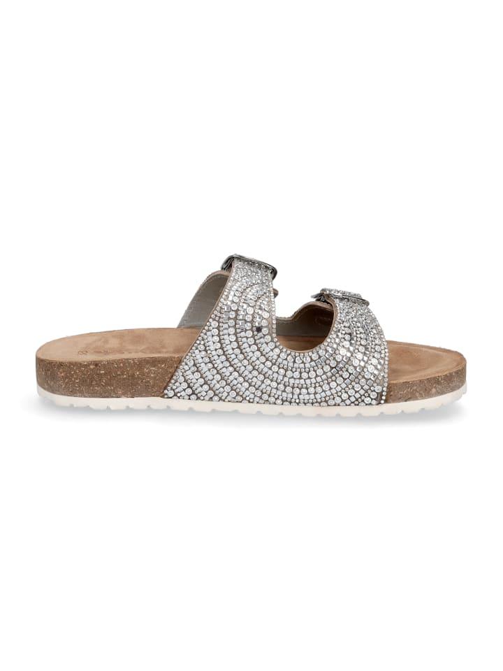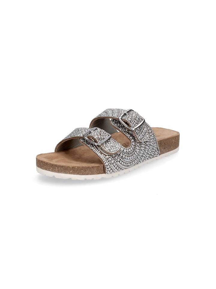 Женские мюли Tamaris с двумя ремешками из кожи серебристого цвета с пряжкой и эргономичной кожаной стелькой