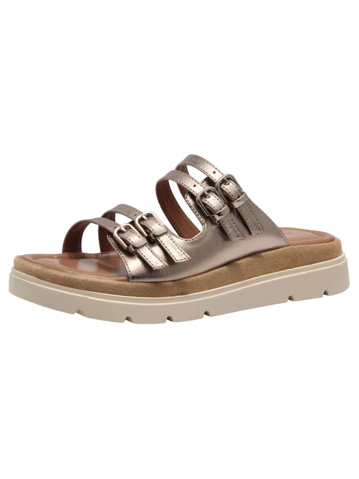 Наслаждайтесь легкостью лета с этими модными босоножками, которые сияют в элегантном черном и сияющем металлическом цветах. Спортивный повседневный дизайн сочетает в себе открытый носок и двойные пряжки для индивидуальной регулировки. Благодаря каблуку высотой 3,5 см и толстой фактурной подошве они обеспечивают высокий уровень комфорта и идеально подходят для активного отдыха и спокойного отпуска. Сочетание синтетического верха и кожаной стельки гарантирует не только стиль, но и долговечность — необходимая вещь для любого летнего гардероба! - Первоклассный комфорт благодаря технологии TOUCH-IT