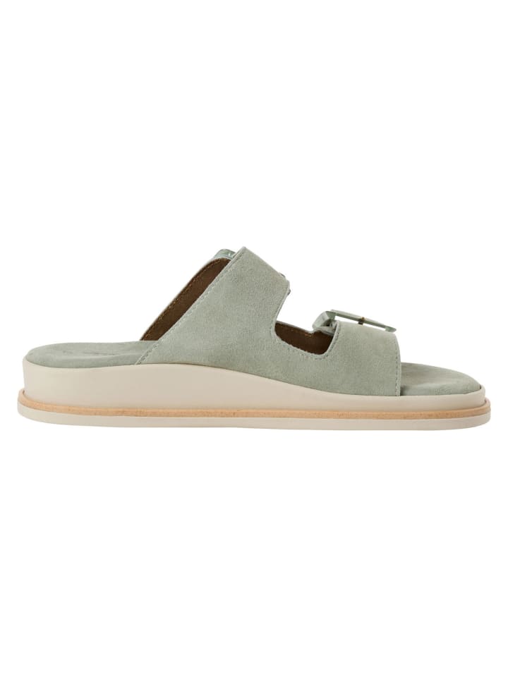 Наслаждайтесь стильной легкостью этих мюлей из высококачественной кожи, которые впечатляют своим современным, повседневным видом. Удобный каблук-танкетка высотой 3,0 см и две крупные пряжки придадут вам элегантности, а открытый дизайн идеально подойдет для беззаботных летних мероприятий. Мягкие, неподвластные времени цвета, такие как черный, бежевый или мятно-зеленый, прекрасно сочетаются с различными нарядами и превращают каждый момент отдыха в нечто совершенно особенное. - Удобные мюли с мягкой стелькой TOUCH-IT