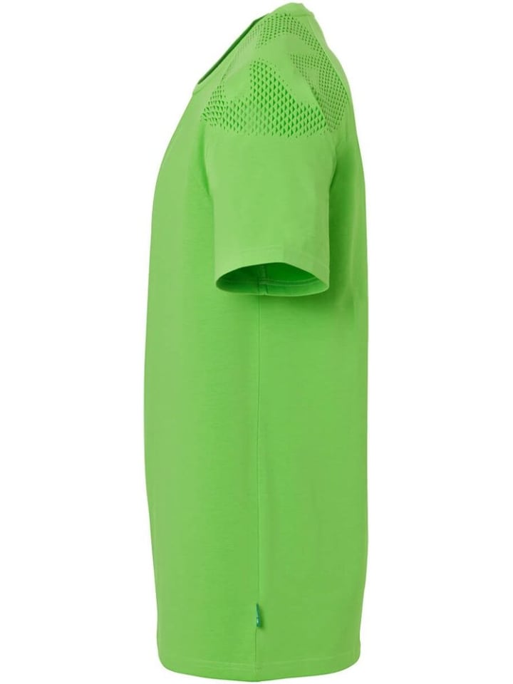 - Круглый вырез с черной окантовкой Kempa - Рукава реглан - Эластичная надпись Kempa - Основной принт на левом плече - Эластичный материал: 97% хлопок (органический), 3% эластан