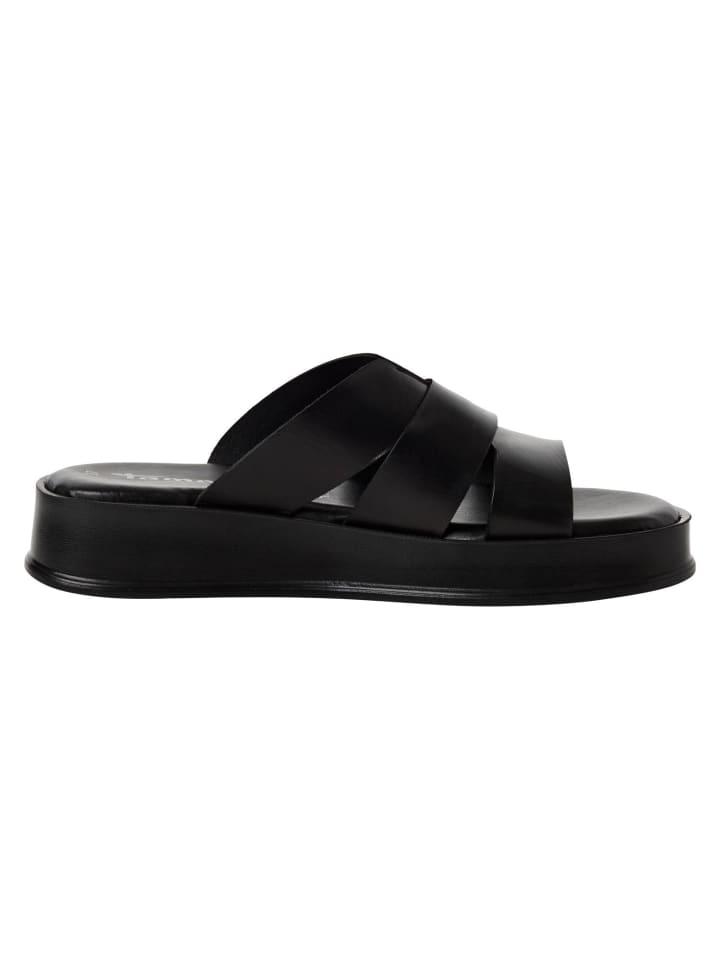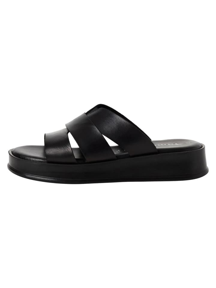 Откройте для себя спортивную элегантность этих черных мюлей из высококачественной кожи, которые впечатляют широкими ремешками и открытым носком. Их современный вид дополняет удобный каблук-танкетка высотой 3,5 см, идеально подходящий для активного отдыха и непринужденных летних мероприятий. Плоская толстая подошва обеспечивает устойчивость и удобную посадку, а технология TOUCH-IT — максимальный комфорт. Идеально подойдет для вашего следующего отпуска и станет любимой вещью в вашем летнем гардеробе. - Максимальный комфорт благодаря технологии TOUCH-IT