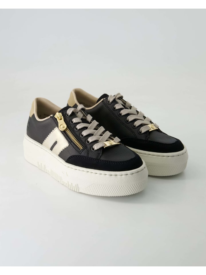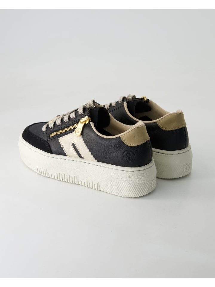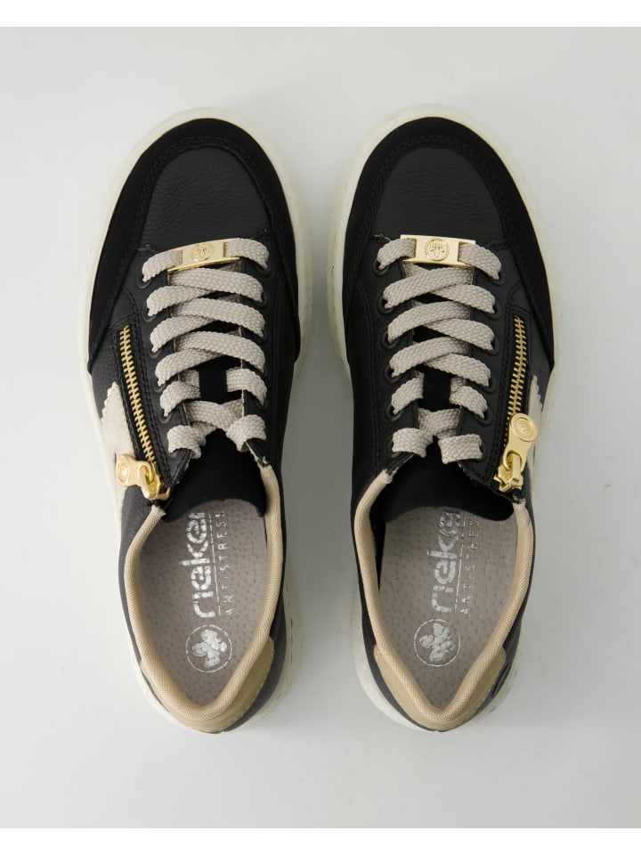 Кроссовки Rieker черного цвета для женщин – модель Morokko из высококачественной кожи и синтетики с антистрессовой стелькой и боковой молнией. Эта спортивная и в то же время элегантная модель обеспечивает комфорт в течение всего дня, оптимальную амортизацию и позволяет быстро надевать и снимать обувь. Текстильная внутренняя подкладка сохраняет ноги свежими, а плоская подошва остается легкой и гибкой. Идеально подходит для активных женщин, ищущих обувь для повседневного ношения в офисе, прогулок по городу или расслабленных выходных. Приобретите его сейчас и добавьте этот универсальный предмет в свой обувной шкаф! - Антистрессовая стелька