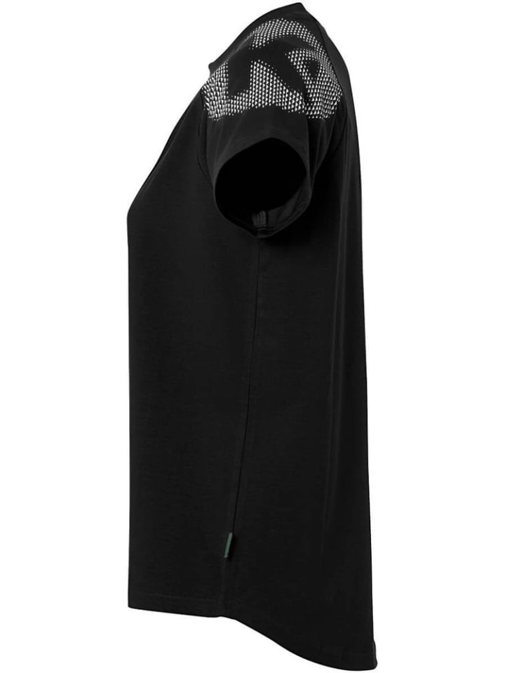 Круглый вырез с черной окантовкой Kempa - Рукава реглан - Эластичная надпись Kempa - Приталенный крой - Основной принт на левом плече - Эластичный материал: 97% хлопок (органический), 3% эластан