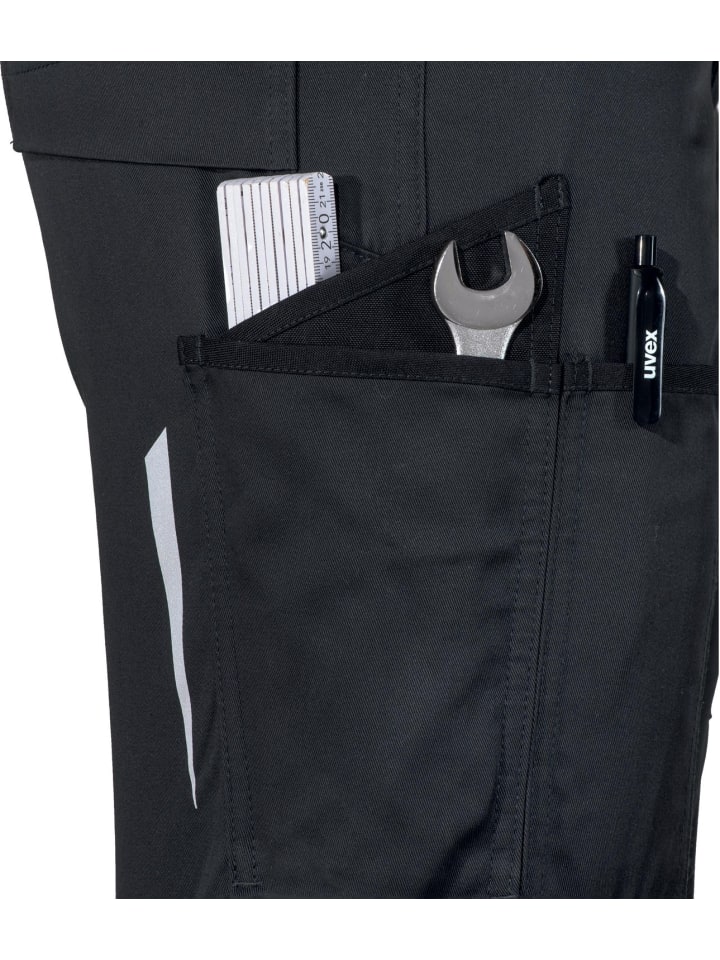 - Качество/долговечность: вам понравится известное качество uvex. Усиленные карманы из материала Cordura обеспечивают прочность рабочих брюк