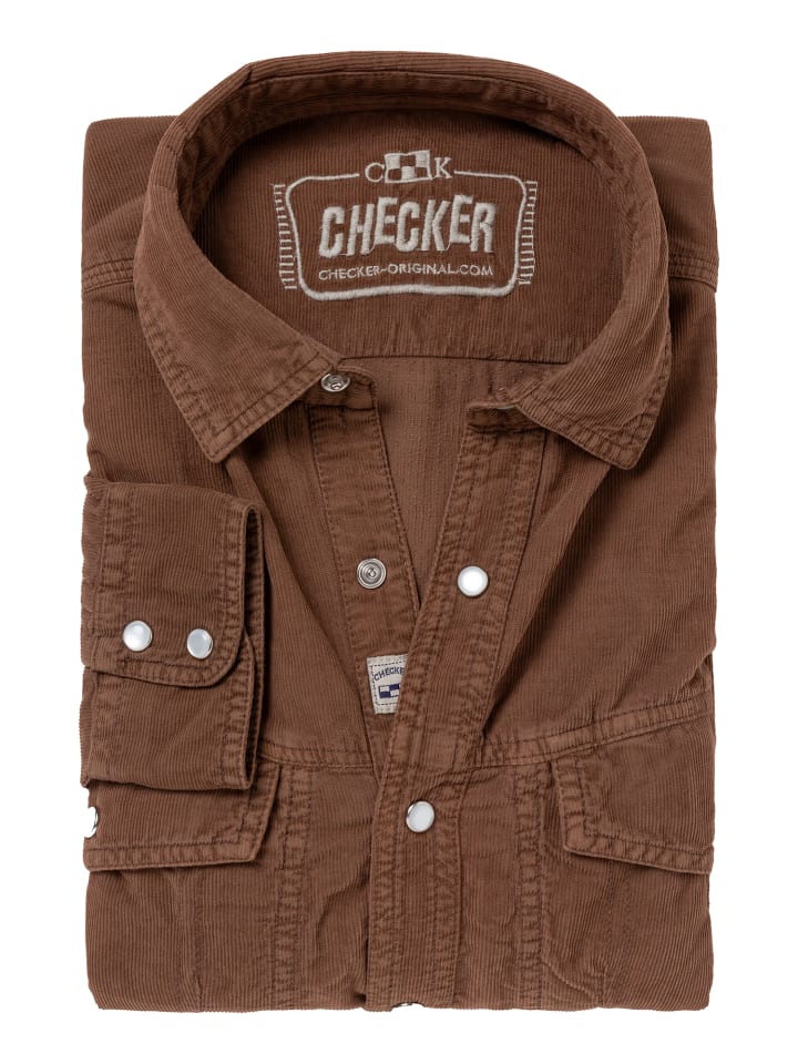 Культовый бренд возвращается! Рубашка Checker Cord Shirt Dynasty впечатляет своей сенсационно мягкой, предварительно выстиранной тонкой вельветовой тканью, которая особенно приятна на ощупь. Изготовленный из чистого хлопка, он сочетает в себе комфорт и долговечность. Кнопки из нержавеющей стали с настоящим перламутром и тройные швы обеспечивают исключительную прочность. Белая задняя кокетка с оригинальной вышивкой логотипа Checker добавляет стильный акцент. - Уютный, предварительно выстиранный тонкий вельвет