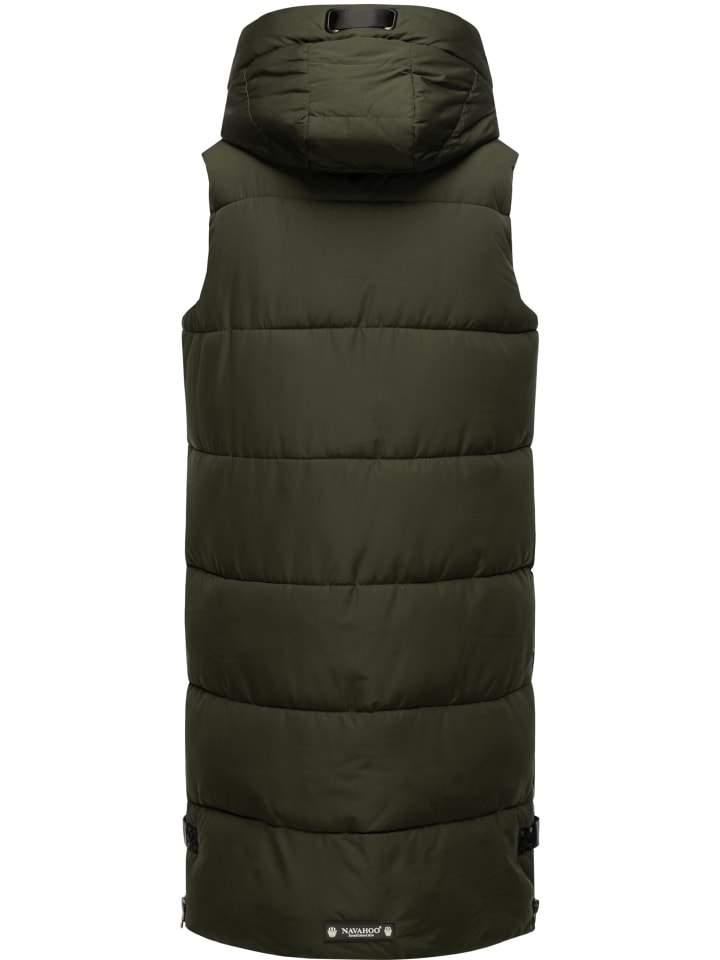 ВНЕШНИЙ ВИД: Длинный женский жилет без рукавов с большим регулируемым капюшоном от Navahoo — при правильном сочетании он идеально подойдет как для холодного времени года (осенью и зимой), так и для прохладных весенних дней.