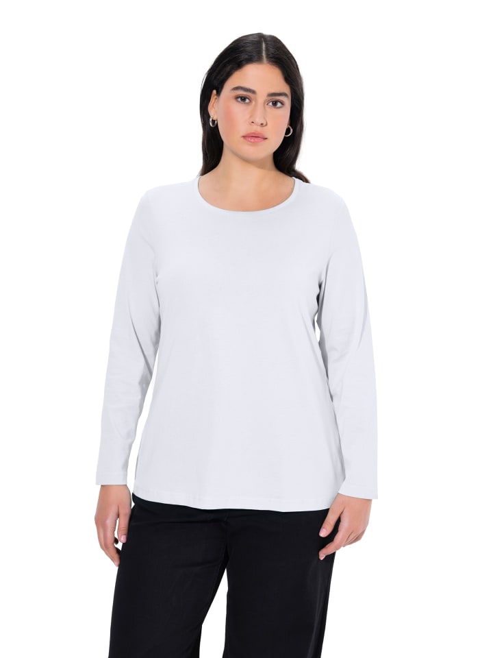 Рубашка с длинными рукавами. Круглая горловина. Приталенный крой. Слегка расклешенный силуэт. Длина с учетом размера: прибл. 68 - 78 см. Красивый топ из высококачественного хлопка и вискозы, слегка А-силуэта. Доступно в различных цветах, с длинными рукавами и круглым вырезом — идеально для комбинирования! Можно стирать в стиральной машине.