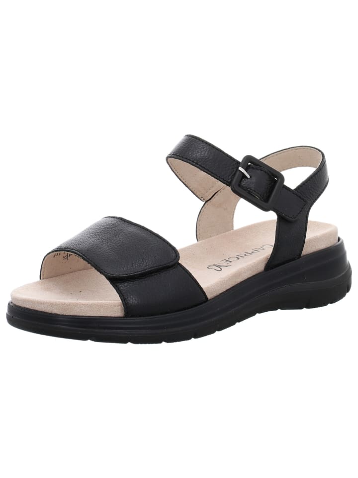 Черные сандалии от Caprice сочетают в себе классический дизайн и максимальный комфорт. Застежка-липучка гарантирует хорошую посадку и достаточную фиксацию. Мягкая стелька нежно ласкает стопы и гарантирует очень приятный климат в обуви. Амортизация и легкая клиновидная подошва также порадуют вас во время бега. Не упустите возможность приобрести элегантные босоножки Caprice!