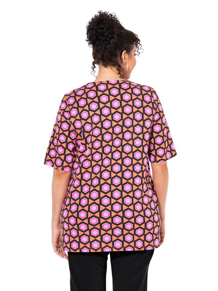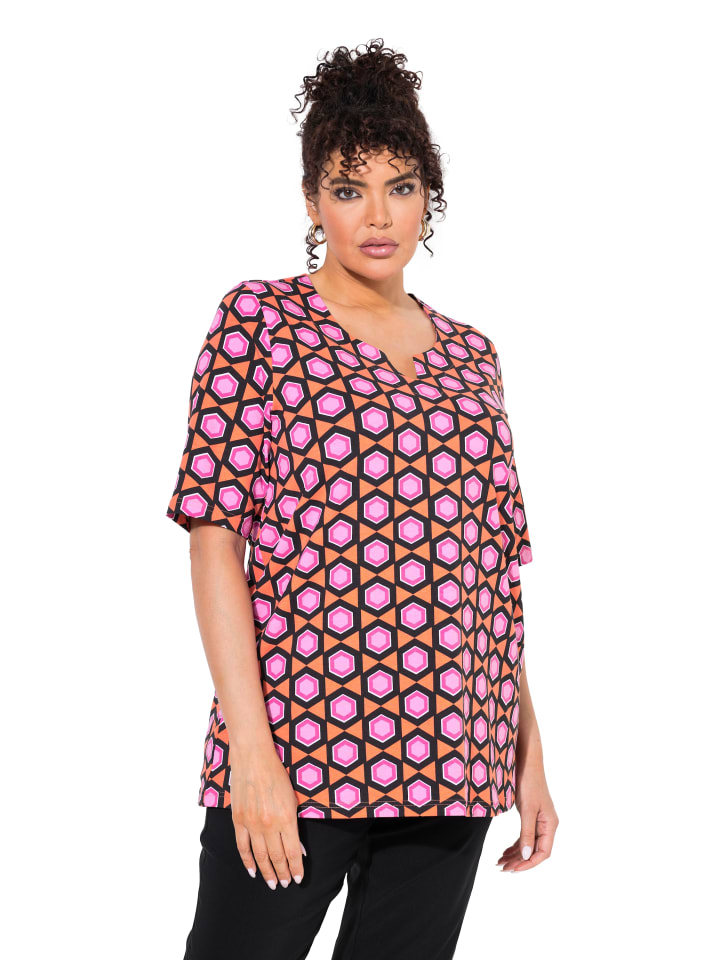 Футболка А-силуэта с графическим рисунком. Туниковый вырез, короткие рукава.